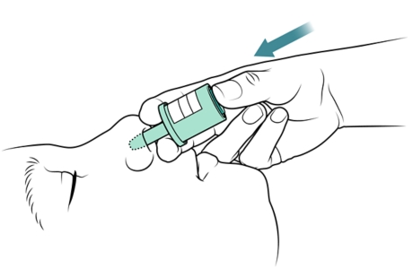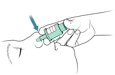 4. Put the tip of the device into one nostril until your fingers touch the person's nose.