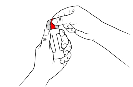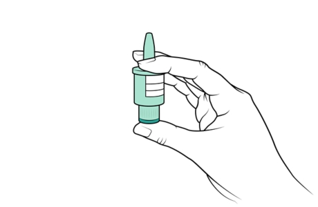 3. Hold the nasal spray device between your thumb and first two fingers.