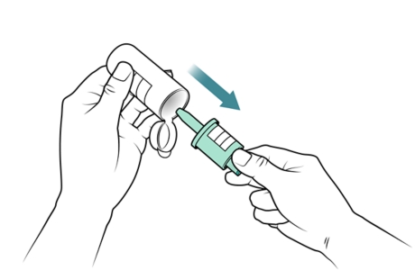 2. Remove the nasal spray device from the bottle. Don't push the plunger until you're ready to give the medicine.
