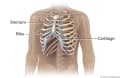 Upper and middle back pain is pain that occurs anywhere from the base of your neck to the bottom of your rib cage. Your ribs attach to the sternum and attach to and wrap around your back. If a nerve in this area is pinched, irritated, or injured, you may also feel pain in other places where the nerve travels. For example, you may have pain in your arms, legs, chest, and belly.