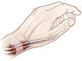 Never splint a finger in a completely straight position, such as on a Popsicle stick. For proper healing, the finger should be slightly bent and in a relaxed position.