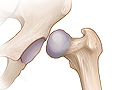 In a normal hip, the thighbone (femur) fits snugly into a cup-shaped socket in the pelvis. It is held in place by muscles, tendons, and ligaments. But in DDH, the hip socket may be too shallow or the tissues around the joint may be too loose.