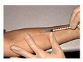 For a tuberculin skin test, you sit down and turn the inner side of your forearm up. The skin where the test is done is cleaned and allowed to dry. A small shot of the tuberculosis antigen (purified protein derivative, or PPD) is put under the top layer of skin. The fluid makes a little bump (wheal) under the skin. A circle may be drawn around the test area with a pen.