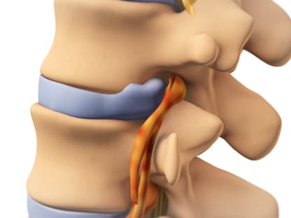 The bones (vertebrae) that form the spine in your back are cushioned by small, spongy discs. When these discs are healthy, they act as shock absorbers for the spine and keep the spine flexible. But when a disc is damaged, it may bulge or break open. This is called a herniated disc. It may also be called a slipped or ruptured disc.