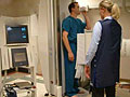 If you are also having a small bowel study, the radiologist watches as the barium passes through your small intestine into your large intestine. X-ray pictures are taken every 30 minutes.