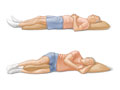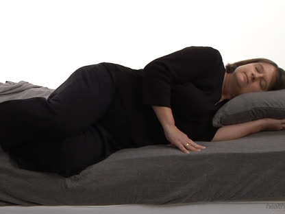 - In bed, try lying on your side with a pillow between your knees. Or lie on your back on the floor with a pillow under your knees.