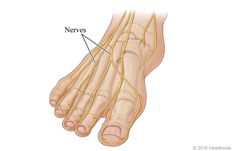 Nerves run throughout the foot. They control movement and feeling in different parts of the foot.