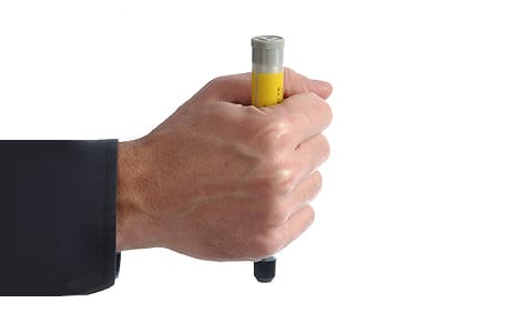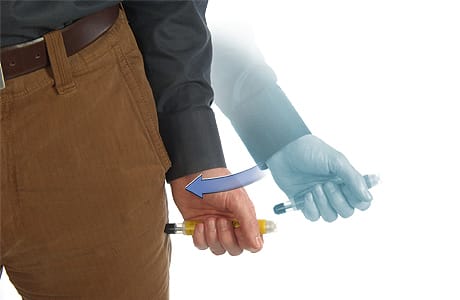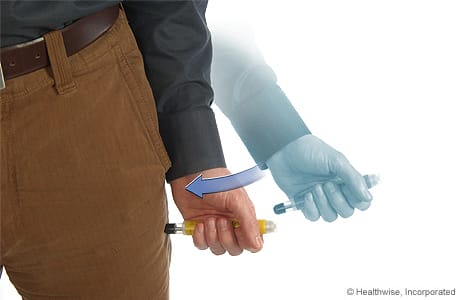 1. Grasp the injector in one fist with the tip pointing down. Follow the instructions for the injector closely. Each one has different steps for use.