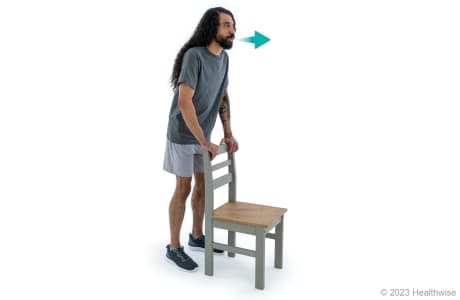 - Stand or sit up straight. Bend forward slightly at the waist. (Breathing while bending forward at the waist may make it easier for you to breathe.) Keep your back straight. If you are standing, you may want to rest your hands on the edge of a table or the back of a chair.