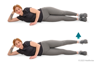- Lie on your side with your affected leg on the floor.