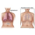 A small cut (incision) is made in the neck just above the breastbone or on the left side of the chest next to the breastbone. Then a thin scope (mediastinoscope) is inserted through the opening. Your doctor will look at the space in your chest between your lungs and heart. Lymph nodes or a tissue sample (biopsy) can be collected through the scope. The sample is then examined under a microscope for problems. These may include infection, inflammation, or cancer.