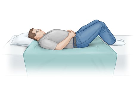• Put a pillow under the bottom leg so that the bottom ankle is off the bed.