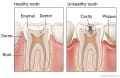 Tooth decay is damage to a tooth caused by germs (bacteria) in your mouth. These bacteria make acids that can eat away at layers of the tooth. These include the hard outer layer (enamel), middle layer (dentin), and center of the tooth (pulp). The more layers that have decay, the worse the damage.