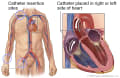 A shot of local anesthetic will be given at the insertion site. A blood vessel is punctured by a special needle or exposed by making a small cut in the skin so that the catheter can be passed into the blood vessel. The catheter is slowly moved through the blood vessel into your body. The catheter tip is moved into different positions in the heart's vessels and chambers while the doctor watches its progress on the imaging screen. Pressures inside the heart chambers can be measured. Blood and heart tissue samples may also be removed through the catheter, if needed.