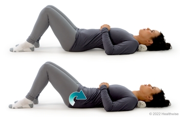 - Lie on your back, and bend the knee of your affected leg.