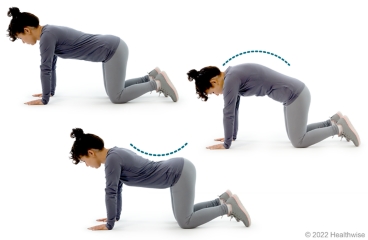 - Go back and forth smoothly 2 to 4 times between the rounded back and swayed back positions.
