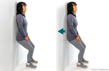- Stand with your back 10 to 12 inches away from a wall.