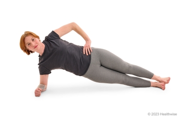 - Lie on your side with your legs straight. Prop your upper body up on your elbow, with your elbow under your shoulder.