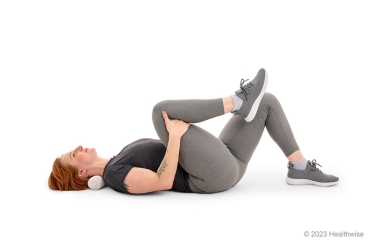To get more stretch, put your other leg flat on the floor while pulling your knee to your chest.