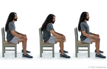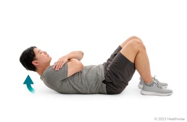 Most people who have back pain naturally feel better by doing certain motions. Some feel better when they sit. Others feel better when they stand. Exercise that moves you toward your more comfortable position usually works better to treat your back pain.footnote 1 For example, if you are more comfortable sitting down, exercises that bend you forward—such as partial sit-ups (curl-ups) and knee-to-chest exercises—may help.
