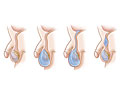 Sometimes fluid leaks into the space, filling it like a small water balloon. This is a hydrocele. When the space closes up and traps the fluid inside, it's called a noncommunicating hydrocele. Usually, the body absorbs the fluid over time.