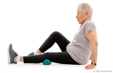 - Sit or lie down on a firm surface or the floor with your affected leg straight. Place a small, rolled-up towel under your knee.
