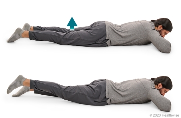 - Lie on your stomach with your legs straight.