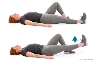 - Lie on your back with your affected leg straight. You can bend your other leg, if that feels more comfortable.