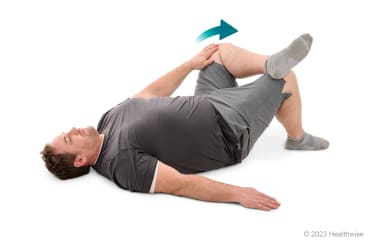 - Lie on your back with your affected leg straight. You can bend your other leg, if that feels more comfortable.