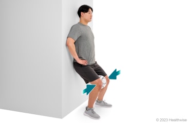 - Stand facing a wall with your hands on the wall. You can also do this with your hands on the back of a chair, a counter, or a tree.