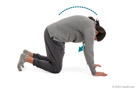 Slowly breathe out as you gently round your spine upward like a cat.
